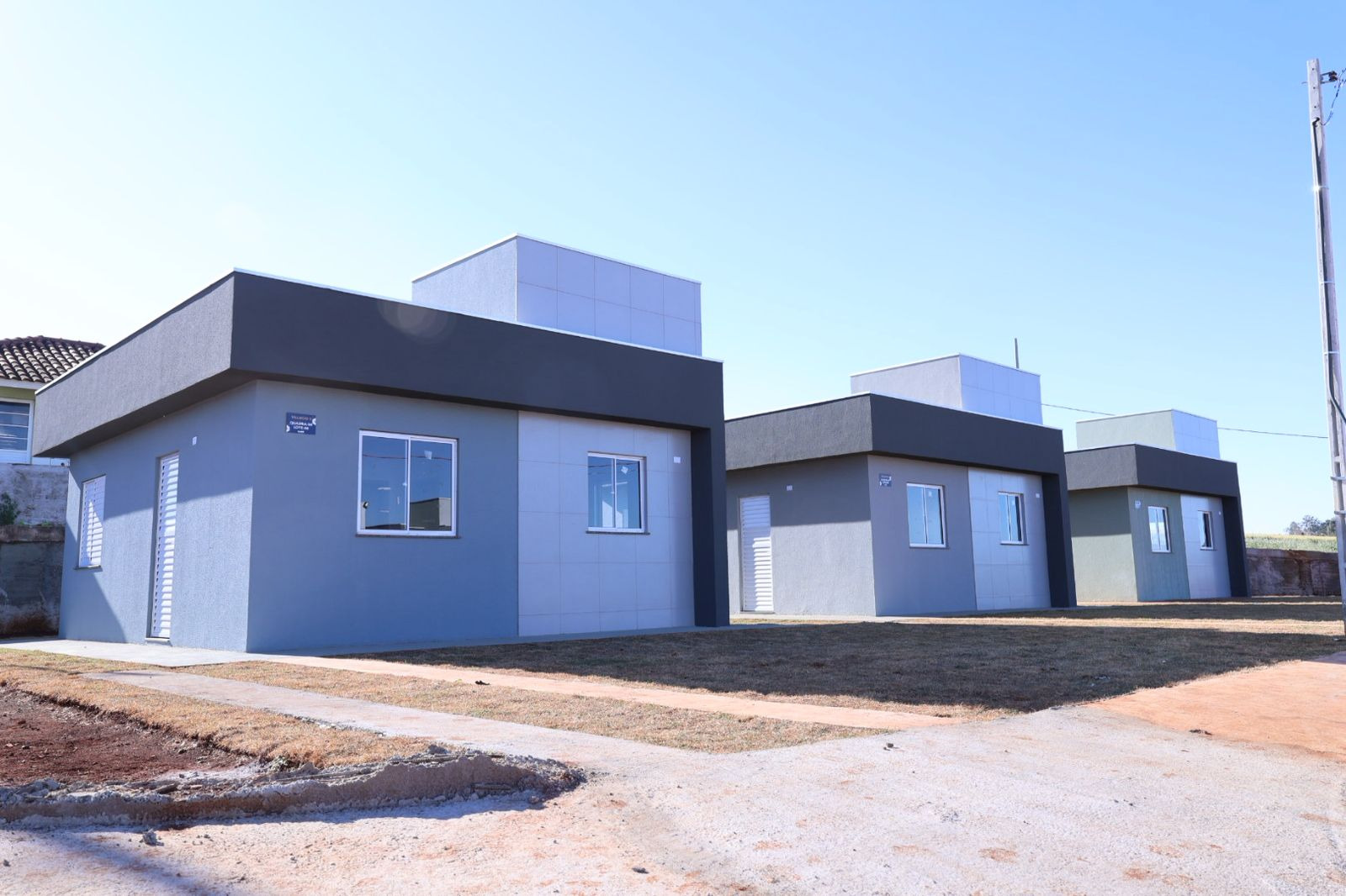 Os imóveis apresentam planta padrão com dois quartos, sala, cozinha, banheiro, área externa e garagem, já sendo entregues com piso em todos ambientes, louças, metais e tanque instalados. O residencial, viabilizado com mais de R$ 15,1 milhões em investimentos, está localizado em uma região em expansão da cidade, perto de serviços públicos, espaços comerciais e com rápido deslocamento ao centro.