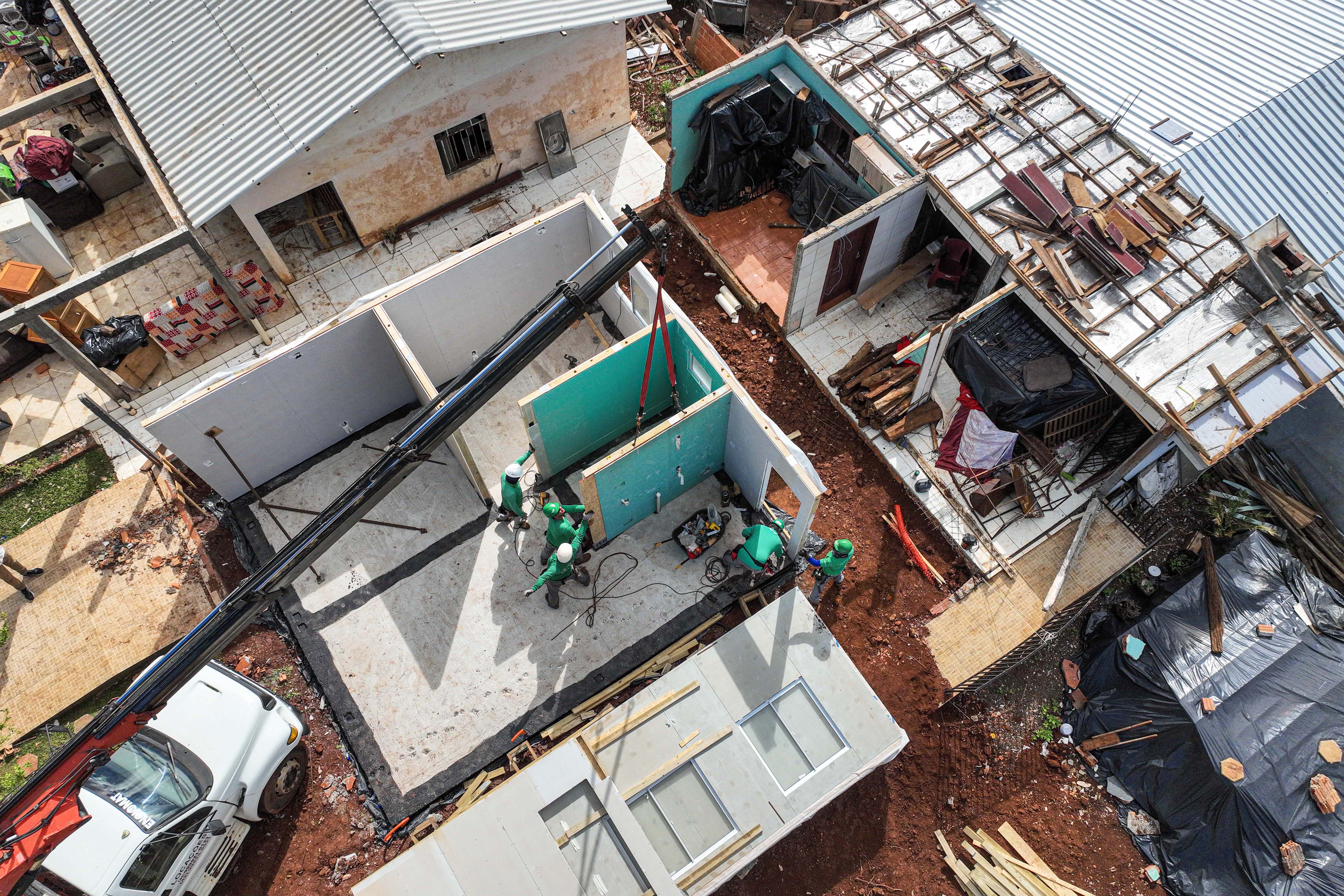 O objetivo é acelerar ainda mais a velocidade das construções nos próximos dias. “Realizamos alinhamentos com a prefeitura para ampliar o número de famílias atendidas, inclusive com um novo espaço e chamamentos públicos para que quem teve a casa severamente danificada possa optar pela reconstrução. Estamos trabalhando para agilizar a liberação dos terrenos e dar mais ritmo às obras, permitindo que as famílias desabrigadas possam retornar ao seu local e recomeçar a vida”, afirmou o superintendente de Programas da Cohapar, Kerwin Kuhlemann. “Também estamos trabalhando para agilizar a liberação dos terrenos que já estão definidos, tanto os municipais quanto os das próprias famílias afetadas.”