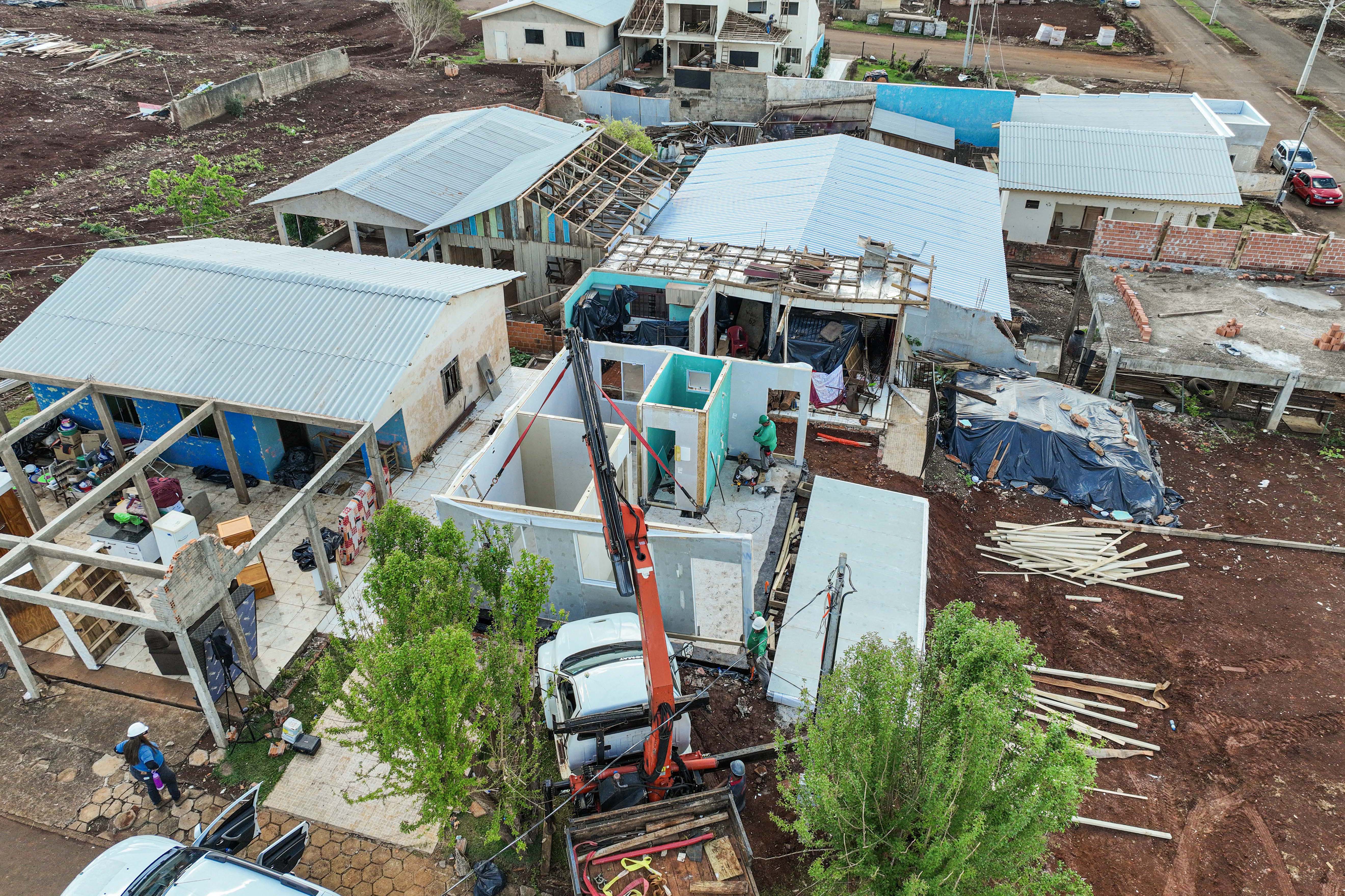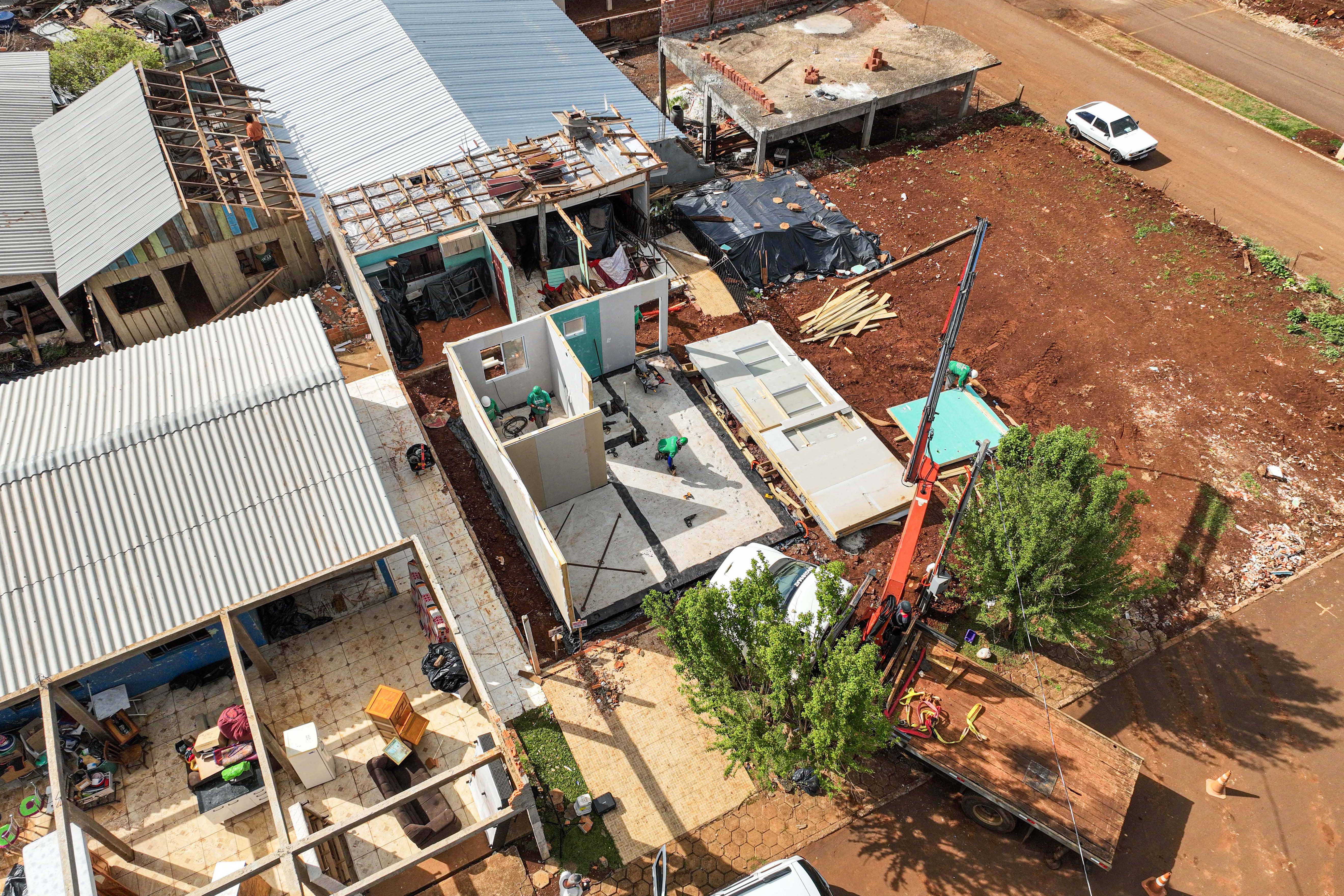 A Companhia de Habitação do Paraná (Cohapar) é a responsável pelo gerenciamento das obras e pelo cadastro das famílias atingidas pelo fenômeno climático. Até o momento, oito lotes já passaram pela limpeza, com cinco casas erguidas: uma em fase de acabamento (com instalação de cerâmica, pintura, forro, louças e metais), duas em processo de telhamento e outras duas com a montagem das paredes.