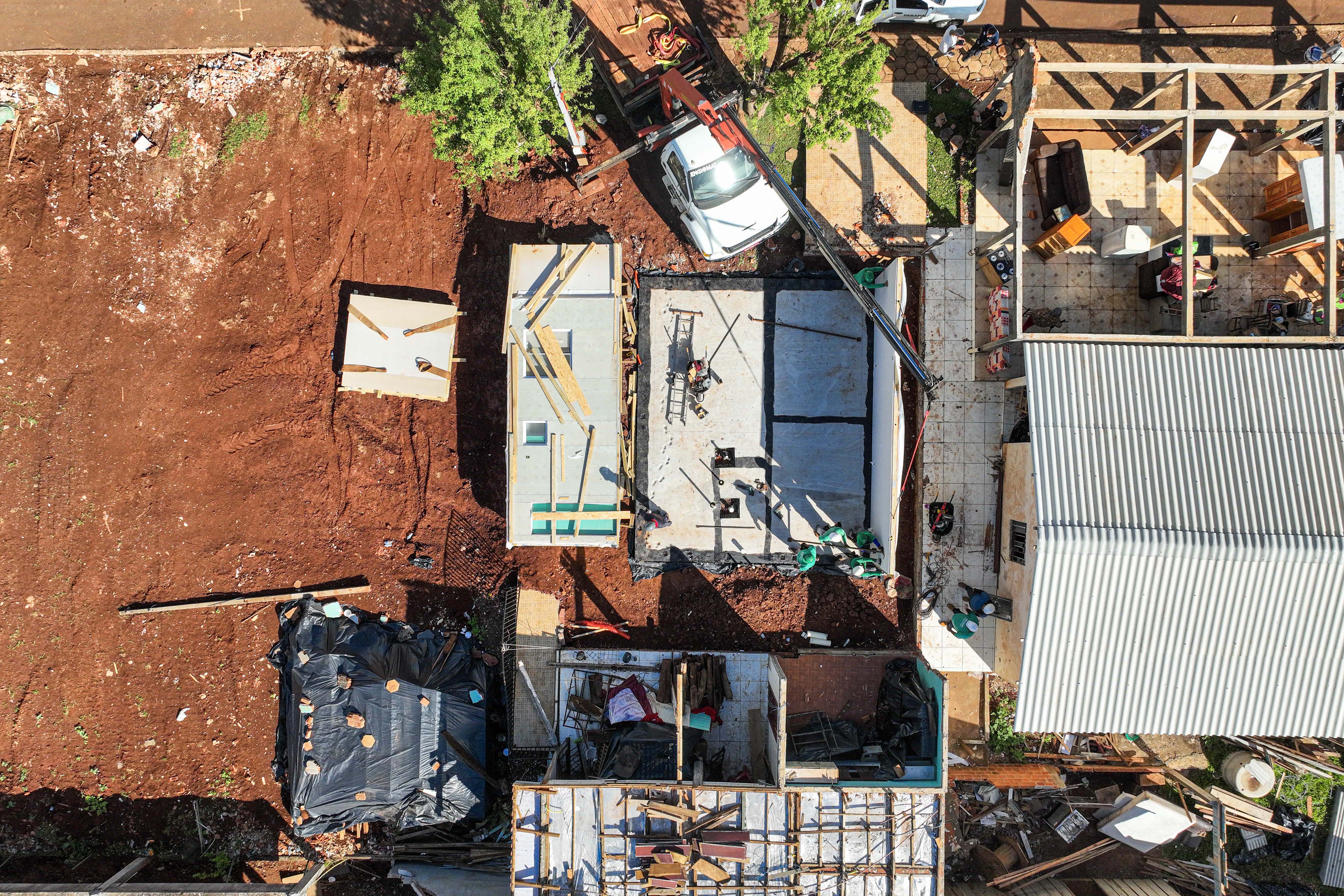 PROCESSO – Antes de iniciar a construção, os terrenos são limpos para que os serviços de fundação rasa e concretagem possam ser iniciados. Com o espaço liberado, essa primeira etapa leva de dois a três dias, até que o concreto possa secar.