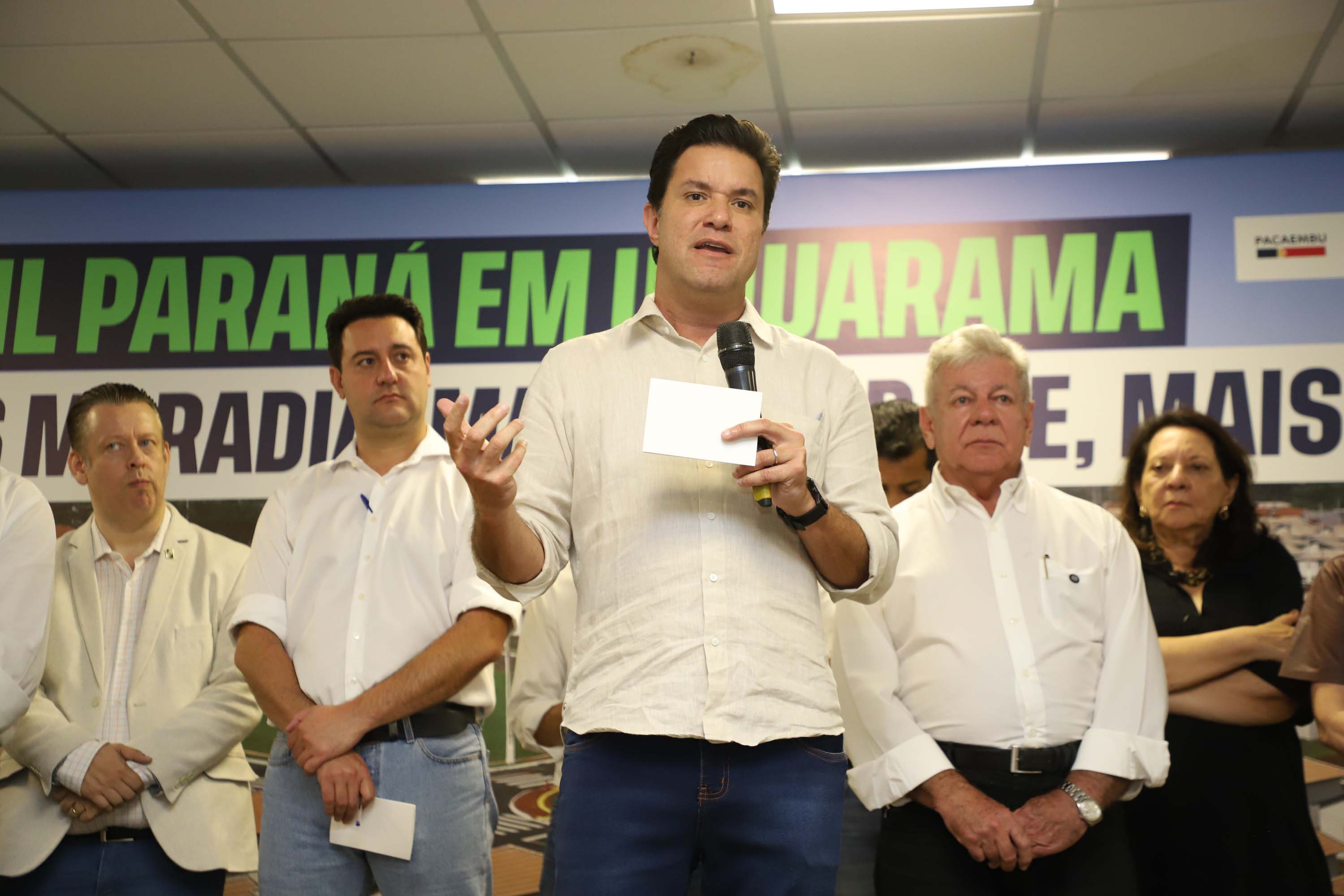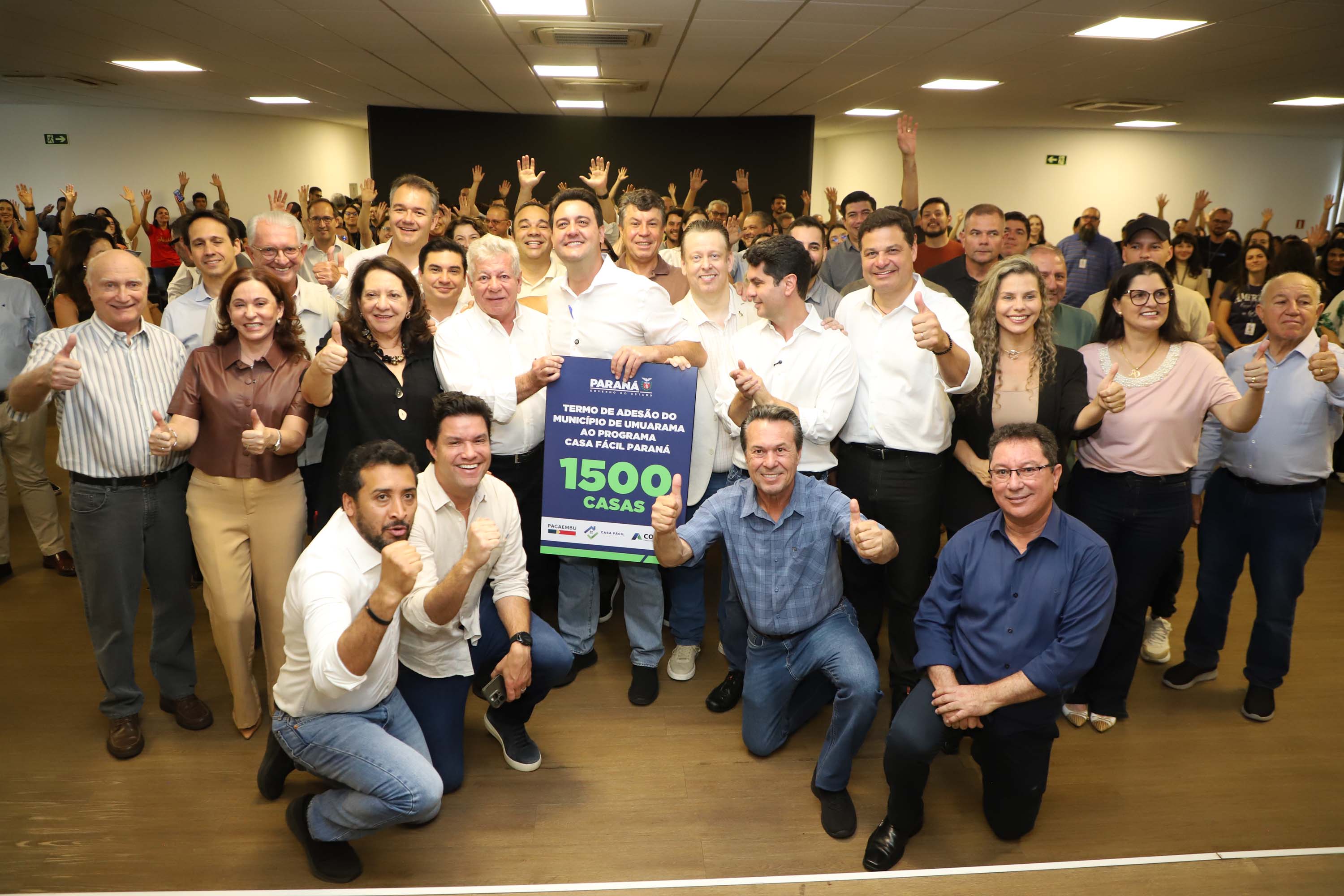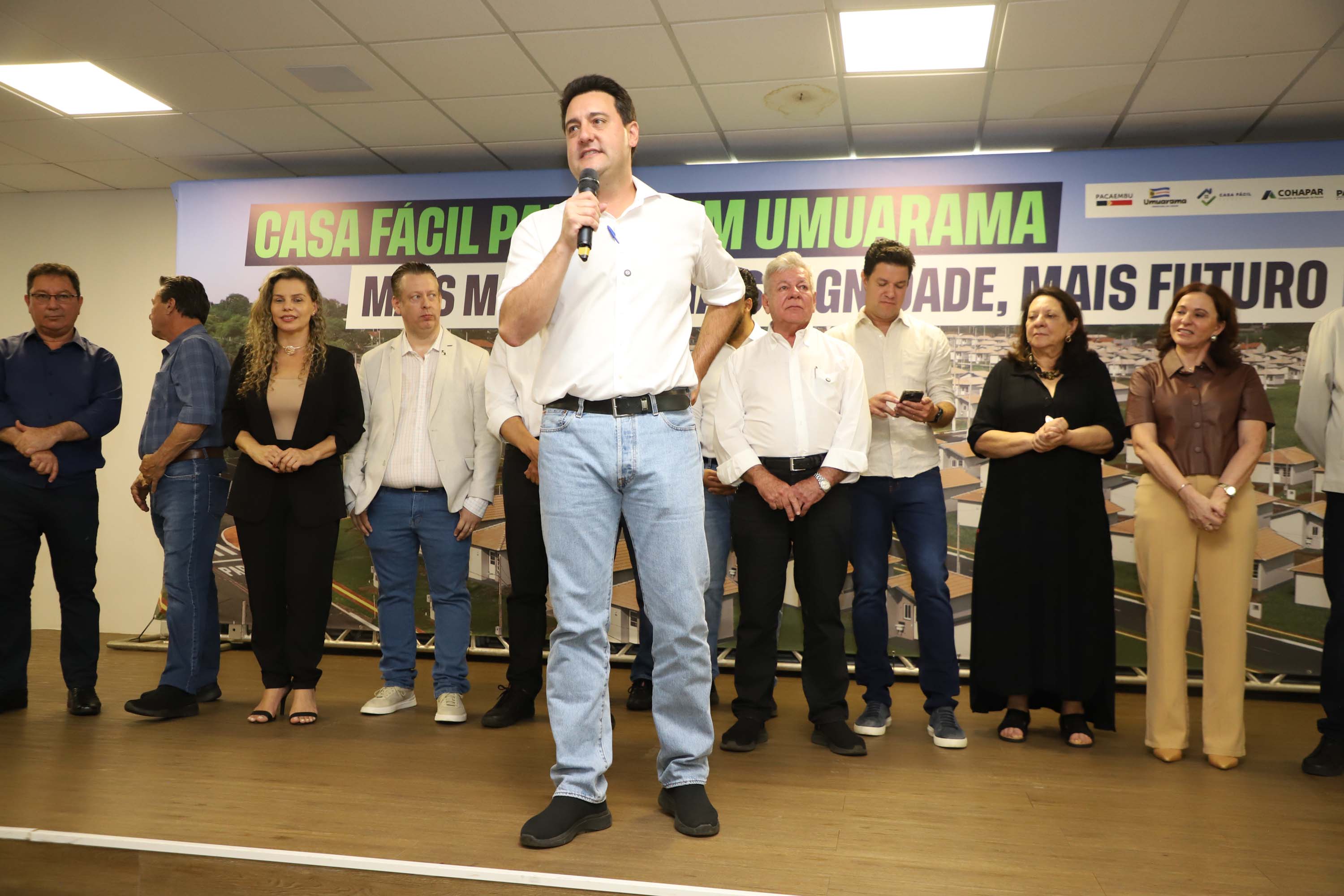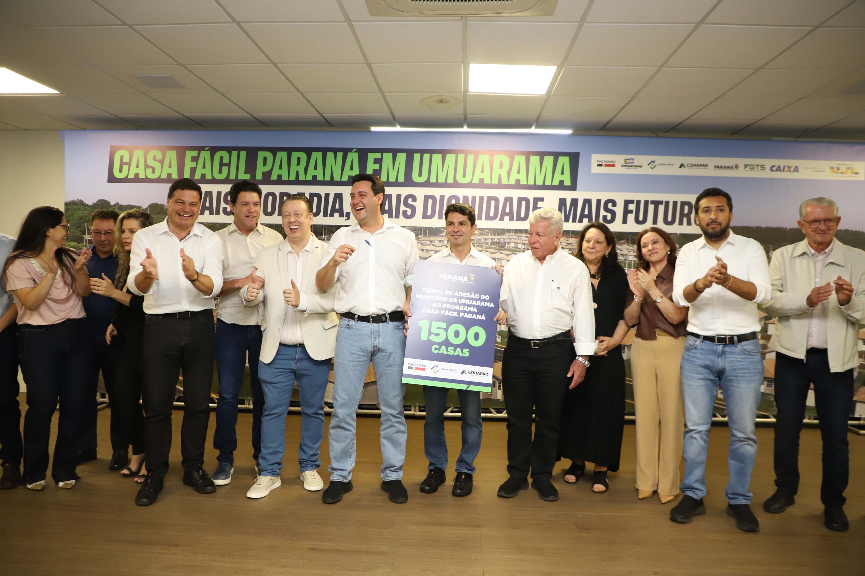 O governador Carlos Massa Ratinho Júnior anunciou nesta quarta-feira (17) a construção de 1.500 novas moradias em Umuarama, no Noroeste do Paraná. O empreendimento será executado pela construtora Pacaembu, com financiamento da Caixa Econômica Federal, e receberá cerca de R$ 30 milhões do Governo do Estado, por meio do programa Casa Fácil Paraná. Ele também inaugurou a unidade Poupatempo Paraná na cidade, a décima do Estado e a segunda da região Noroeste do Estado, depois de Maringá.
