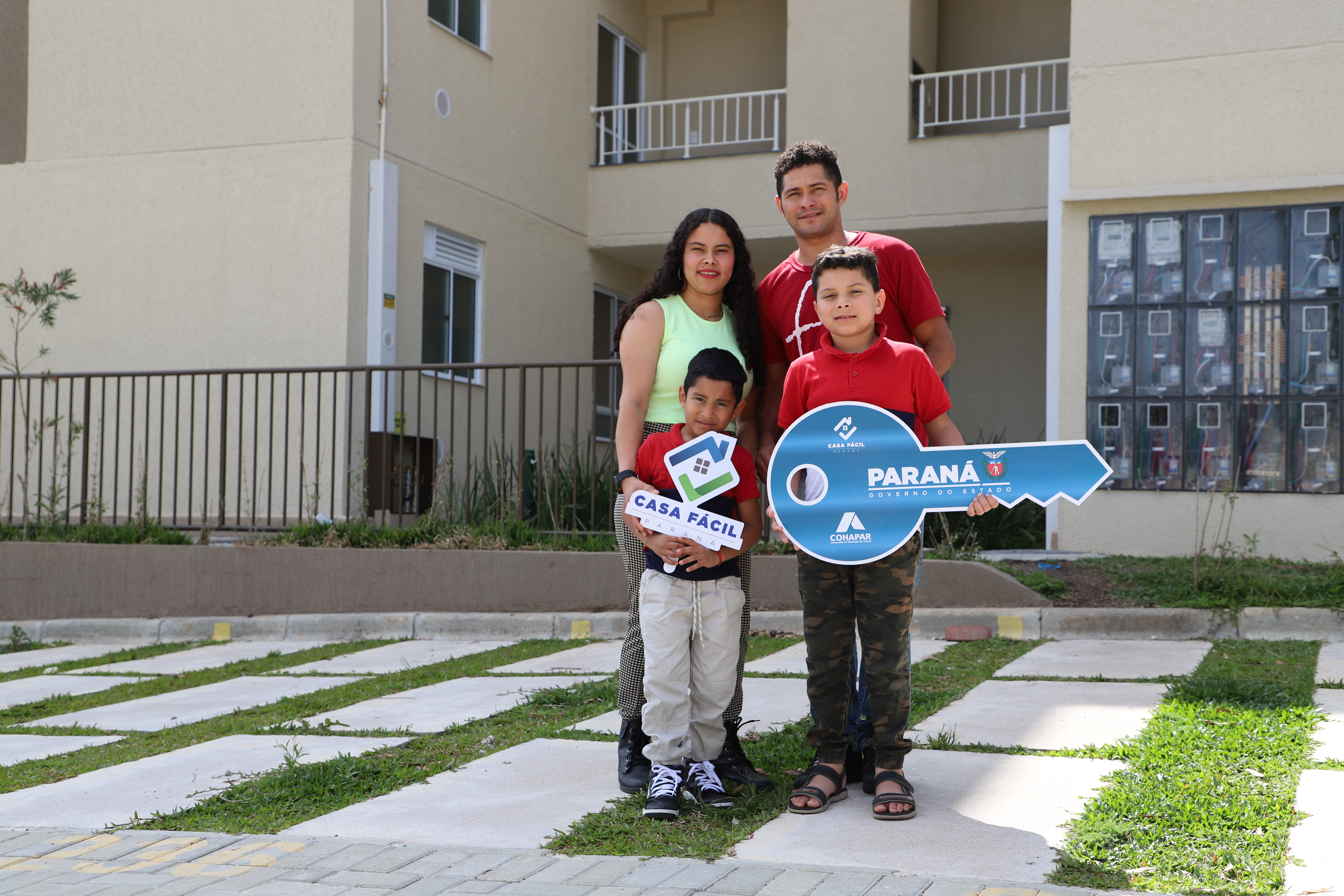 Para a auxiliar de cozinha Gabriela Gomes Ferreira, 26 anos, e o operador de máquinas Michel Moreira da Costa, 27 anos, a casa própria representa a realização de um sonho para a família, que inclui os filhos pequenos Derek Amenadiel e Isaac Gabriel. Pernambucanos radicados no Paraná há oito anos, eles moravam em São José dos Pinhais e escolheram Araucária pela oportunidade real de adquirir o imóvel. “É muita alegria, é muita emoção. Estava contando os dias para vir receber essas chaves. O sonho da casa própria foi o maior motivo para virmos para cá”, contou Gabriela. O casal aprovou a infraestrutura da região, destacando a proximidade de escolas e comércio. Segundo Gabriela, o benefício estadual de R$ 20 mil foi fundamental para a concretização do negócio. “Deu um aval a mais na nossa compra, na nossa escolha”, afirmou.
