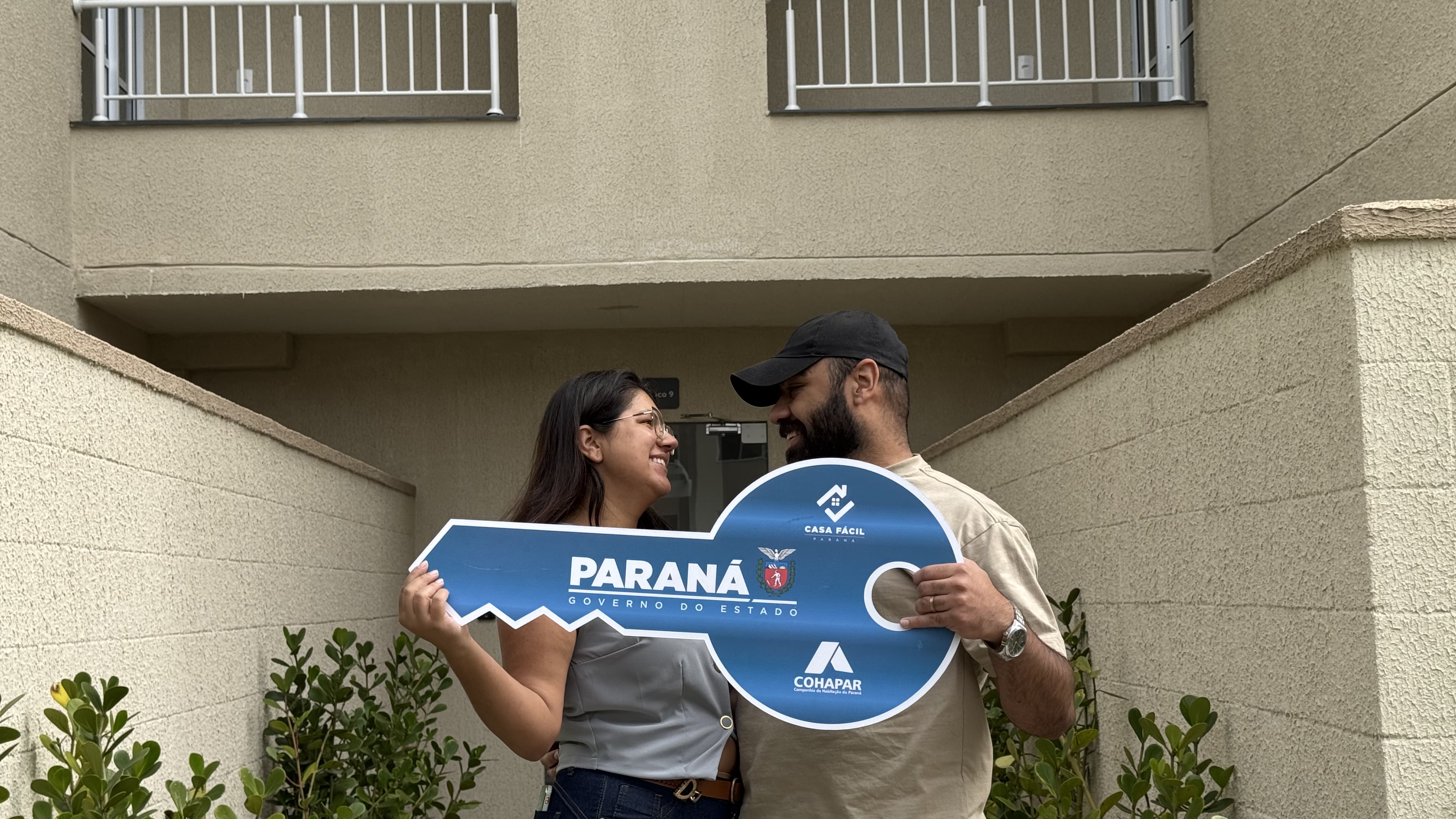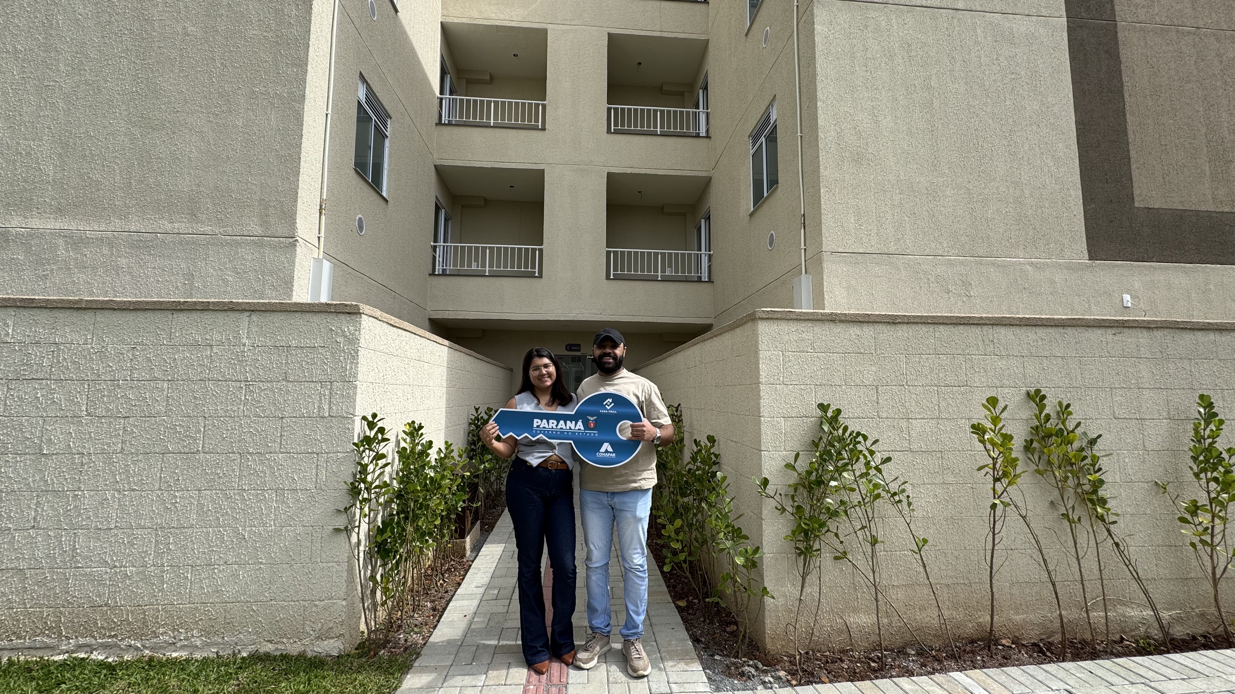 CONQUISTA - A entrega do último módulo do Residencial Camembert, em Araucária, marcou o fim da espera para o casal Talita Rodrigues, farmacêutica de 26 anos, e João Paulo Aparecido dos Santos, técnico de laboratório de 28 anos. Após dois anos de aguardo desde a formalização da compra no final de 2023, a sensação de pegar as chaves é indescritível para os jovens, que vieram de Curitiba encantados com a localização do empreendimento. “Era uma ansiedade que foi aumentando, faltava um ano, faltava seis meses, faltava um mês e agora a gente tá aqui recebendo. Faltam palavras, é emocionante”, relatou João Paulo. A mudança do casal já está programada para o dia seguinte à entrega. Sobre o auxílio financeiro do programa Casa Fácil, eles destacam o impacto na entrada do financiamento. “Seria uma prestação mais alta se não fosse o subsídio”, explicou o novo proprietário.