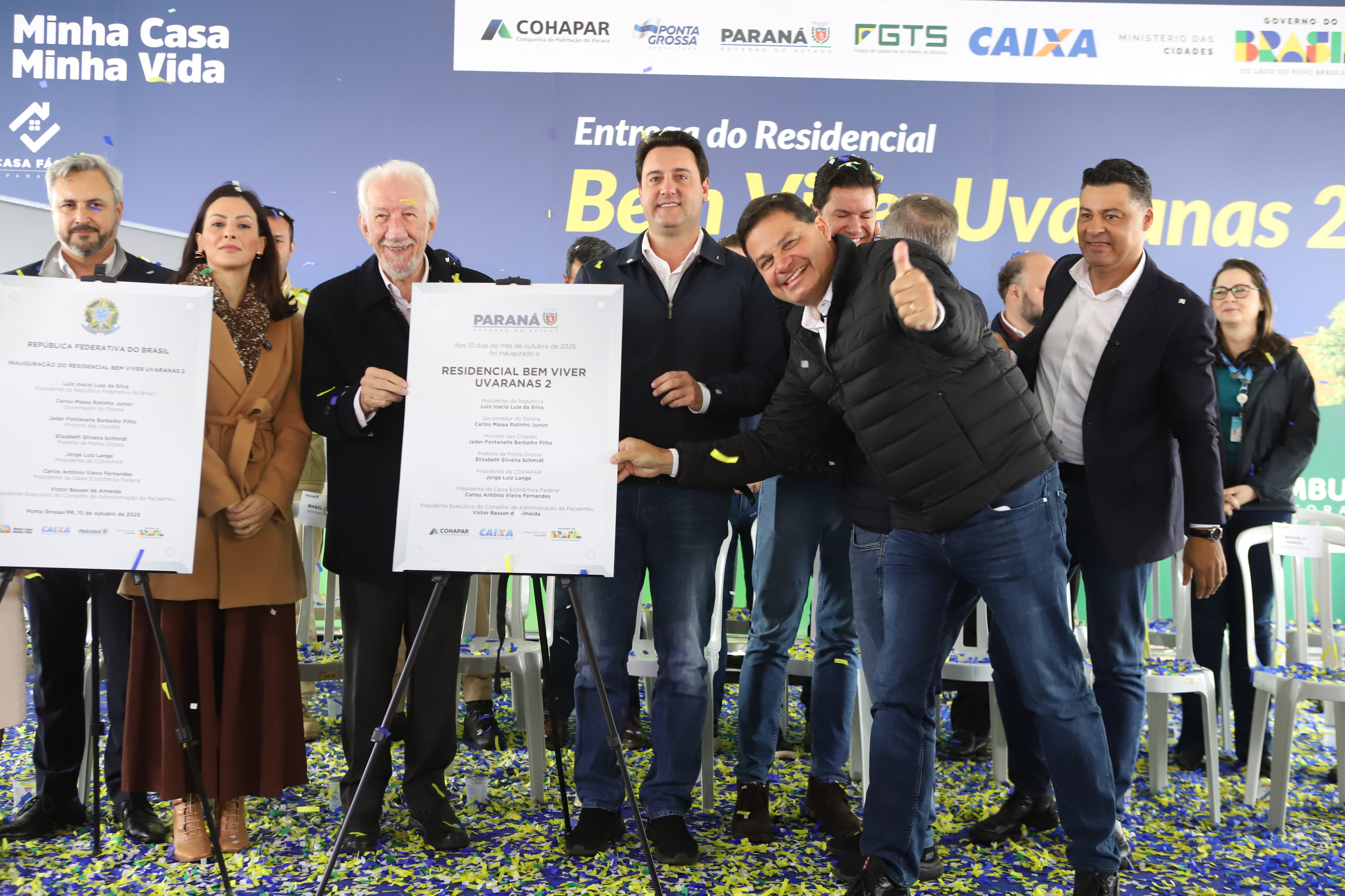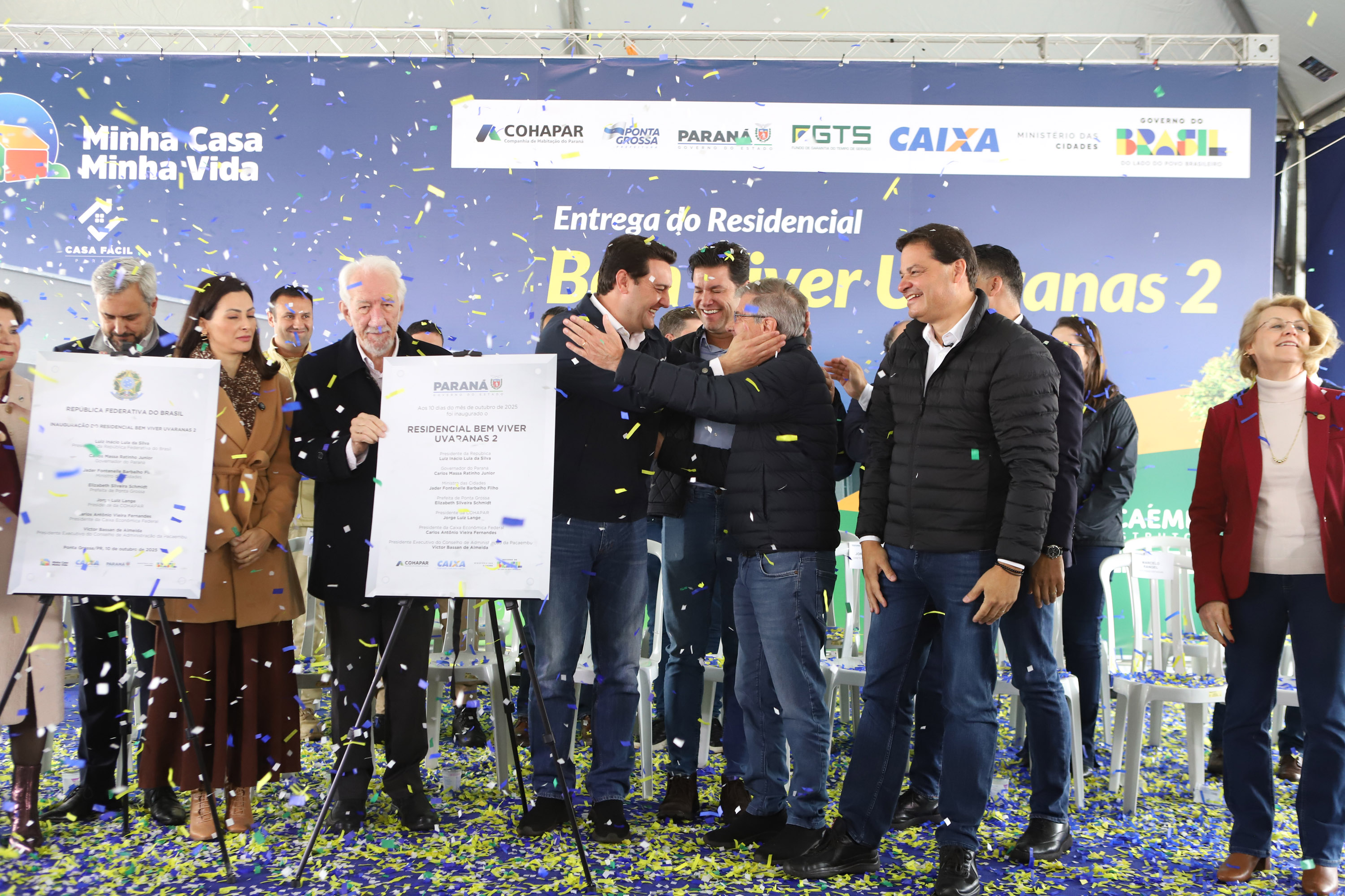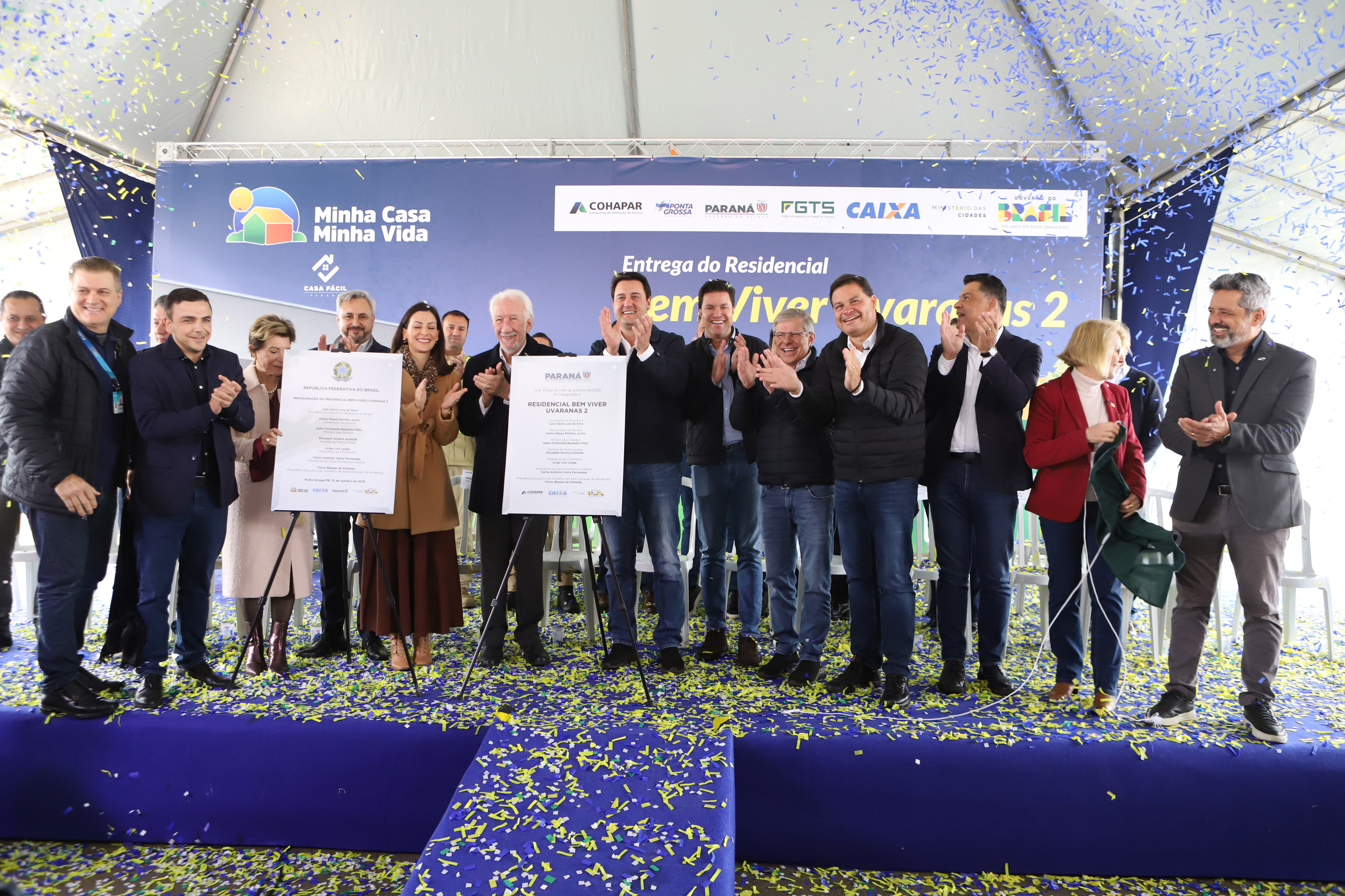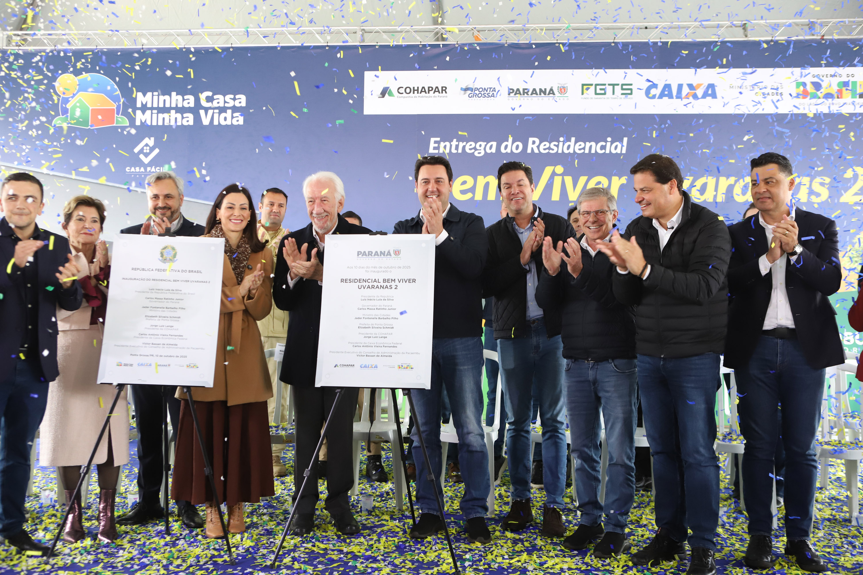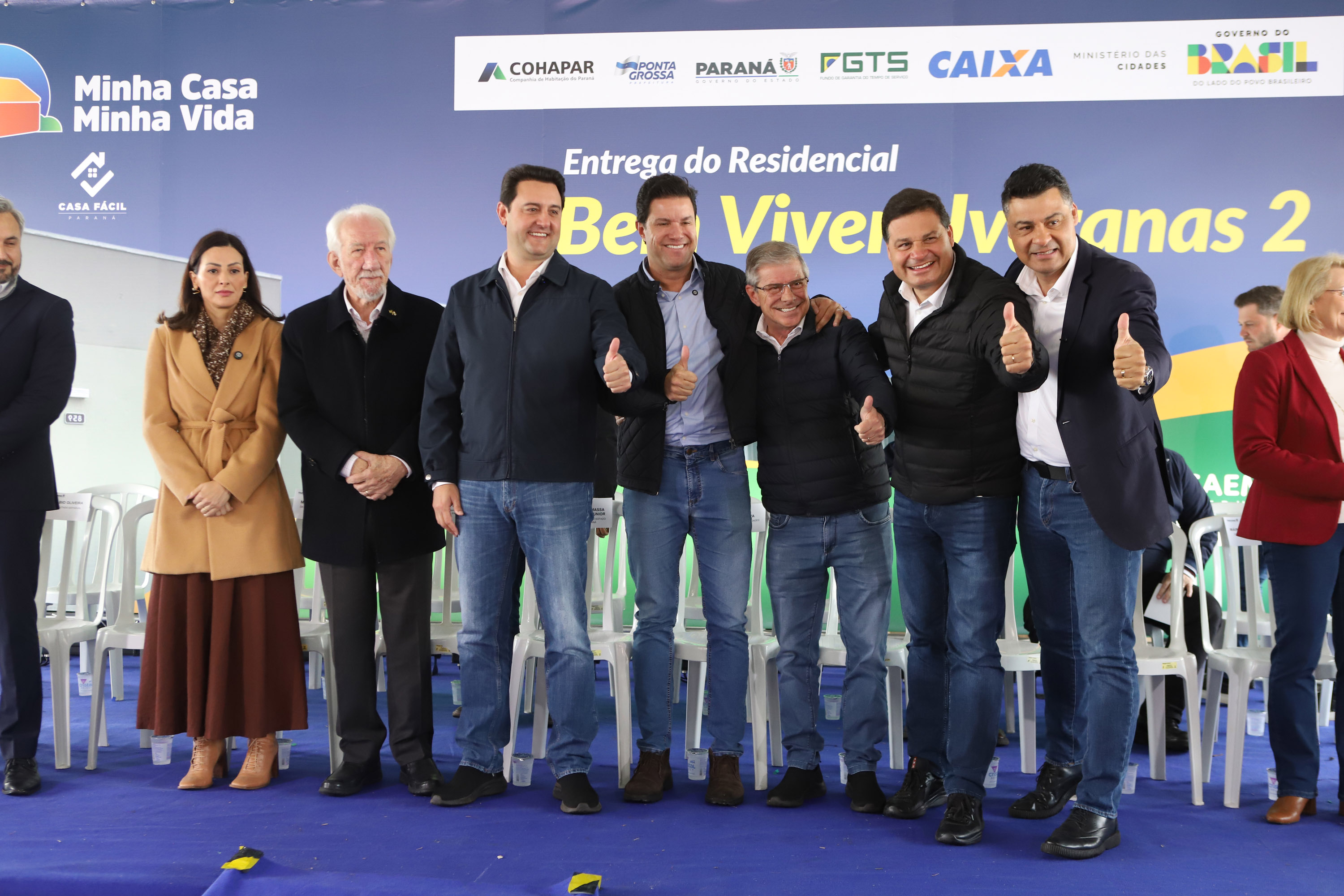 “O resultado é que o Paraná passou a ser o estado que mais constrói casas no Brasil. Entre entregues e em obras, são mais de 100 mil moradias, sendo que somente em Ponta Grossa são 8 mil unidades, quase 10% de todas as casas construídas no Paraná, somando R$ 1,3 bilhão em investimentos em parceria com o governo federal”, acrescentou o governador. “Essas construções geraram 24 mil empregos diretos, movimentando comércio, mercados, farmácias, postos de combustível e todo o setor de serviços. Isso faz a economia girar e ajuda Ponta Grossa a crescer.”
