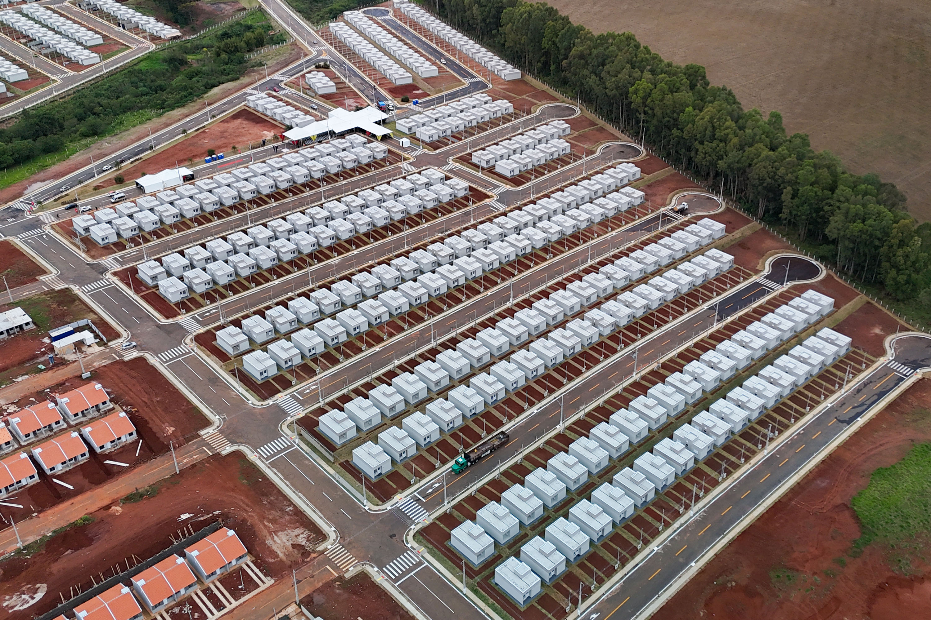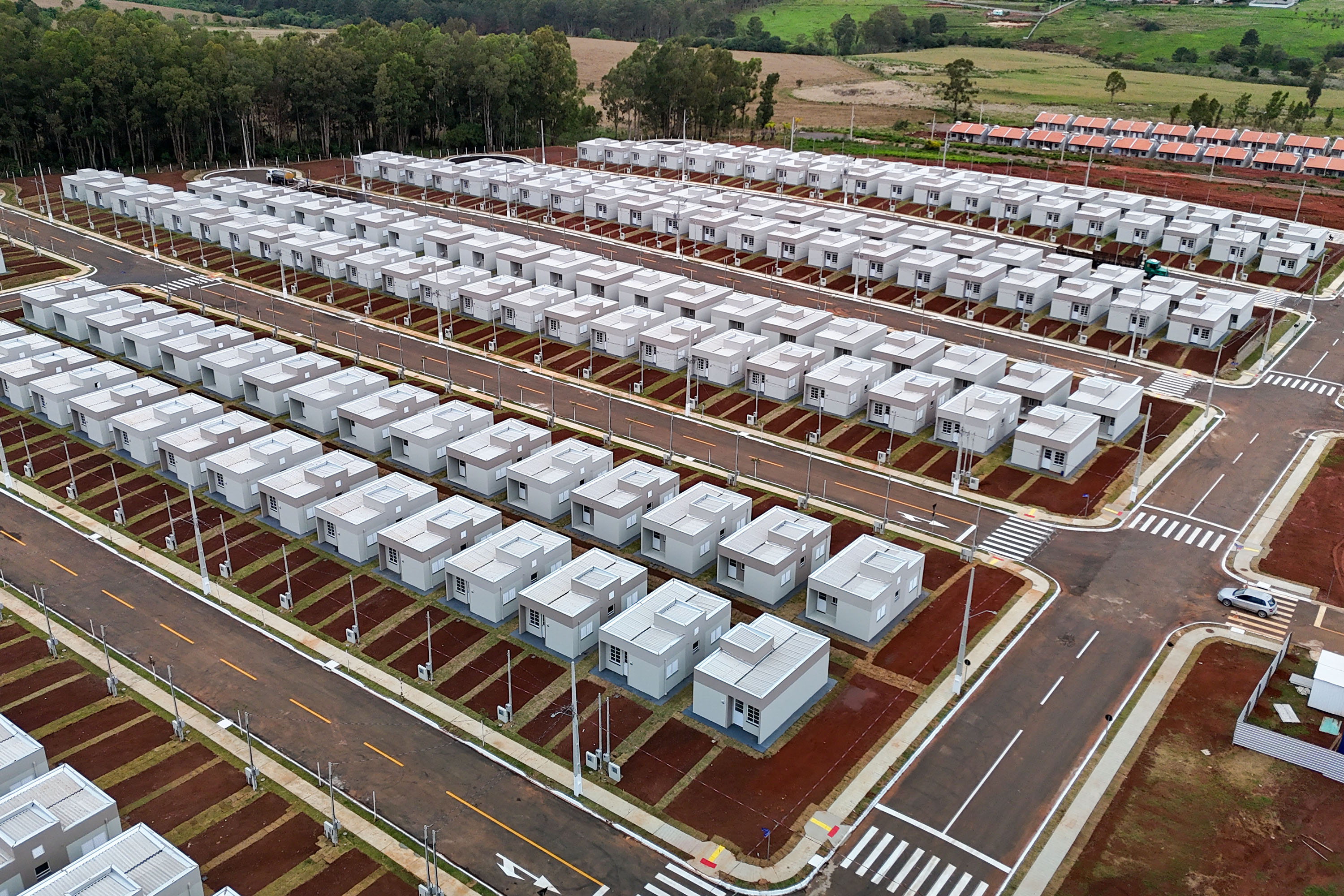 As casas entregues nesta sexta-feira seguem o modelo arquitetônico de 48,64 metros quadrados de área privativa e terrenos a partir de 160 metros quadrados, que possibilitam ampliações futuras. Cada unidade conta com dois quartos, sala, cozinha, banheiro, lavanderia coberta e garagem, todos com piso cerâmico.